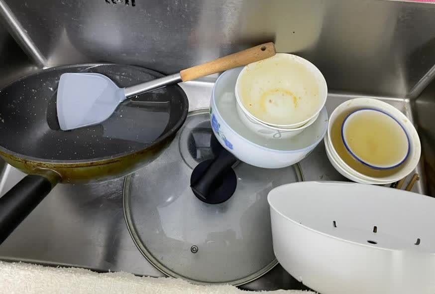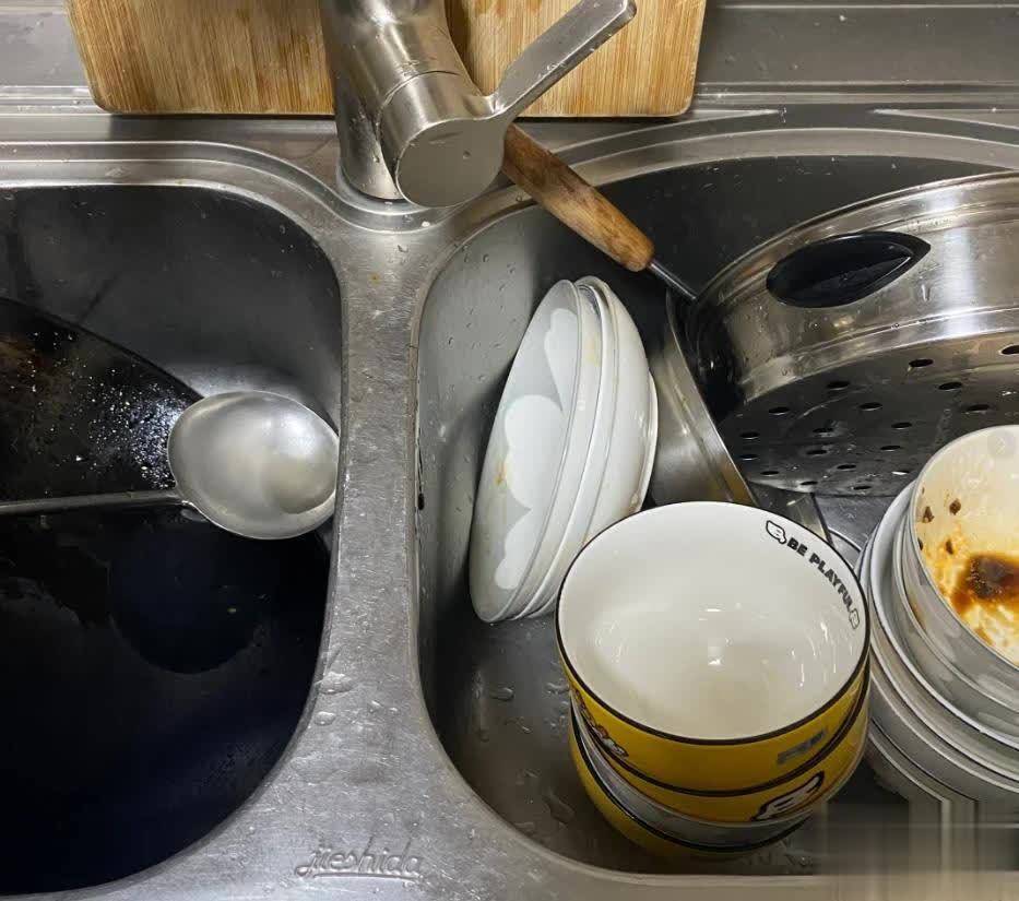 1、不管是盘子、碗、锅还是筷子,吃完饭直接扔水槽,“过会再洗”